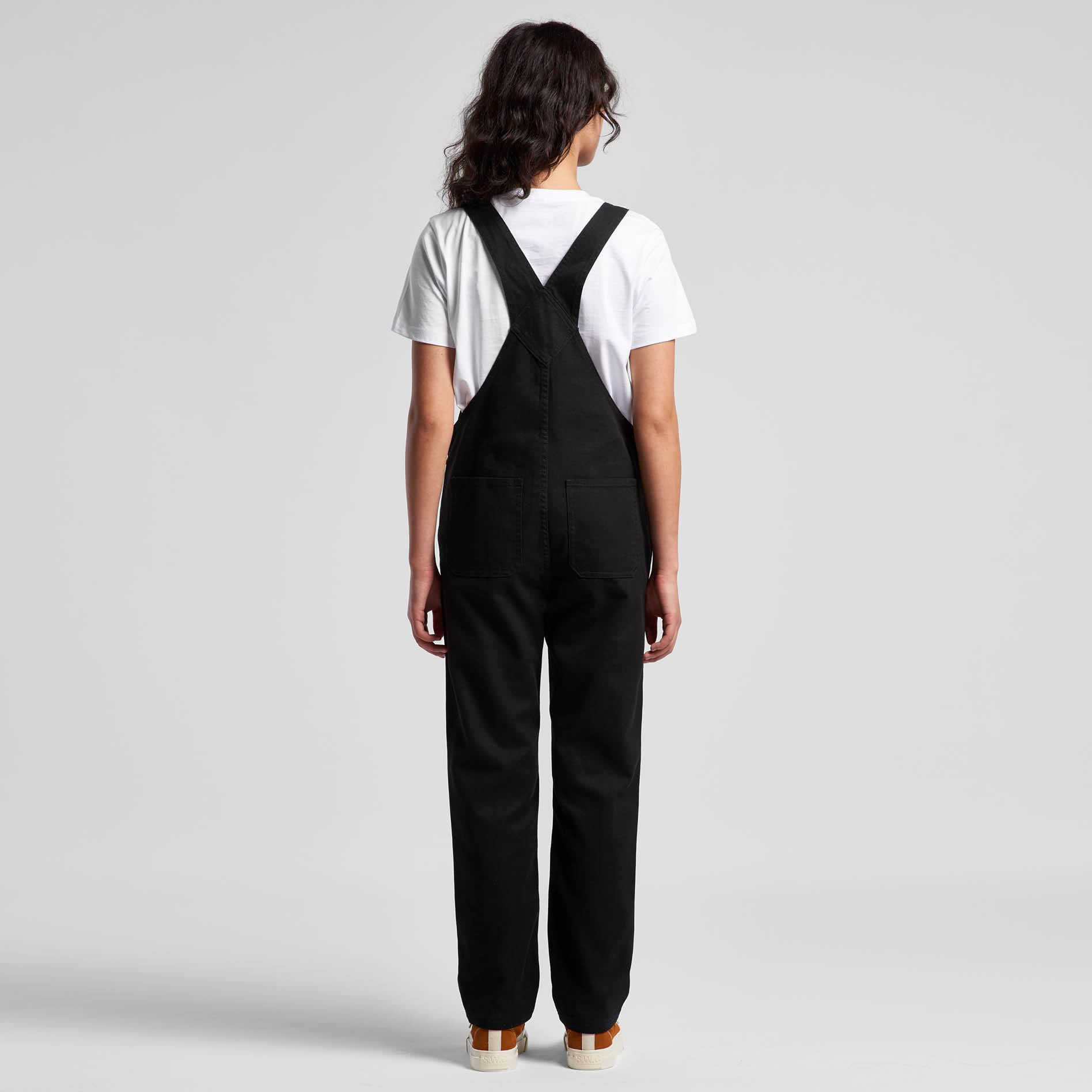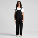 100% Cotton Duck canvas, adjustable shoulder straps, YKK metal hardware, 6 pockets, top stitch detailing, button closure, antique black hardware, YKK zip fly at front, double patch knees